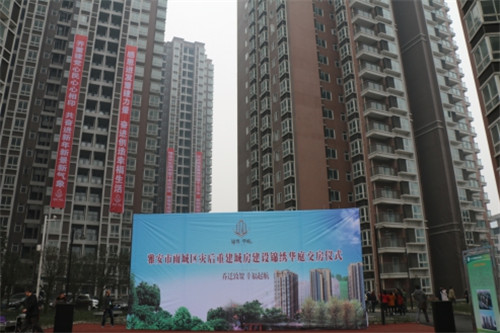 交房儀式上,出席交房儀式的相關(guān)部門負(fù)責(zé)人向付出辛勤努力的建設(shè)者表示崇高的敬意,向喜遷新居的全體居民表示熱烈的祝賀。并指出,安居房建設(shè)工作是一項政策性強、涉及面廣,復(fù)雜又繁重的工作,更是群眾關(guān)心、社會關(guān)注的熱點,全力做好這項工作是大家義不容辭的責(zé)任和義務(wù)。在下一步工作中,爭取在2015年12月31日前,所有城房項目將達(dá)到“拆除外架、水電氣通、入戶道路通、完成樣板間、分房到戶、可以內(nèi)裝” 的要求。在既定時間內(nèi),全面完成重建任務(wù),為雅安經(jīng)濟(jì)作出貢獻(xiàn)。