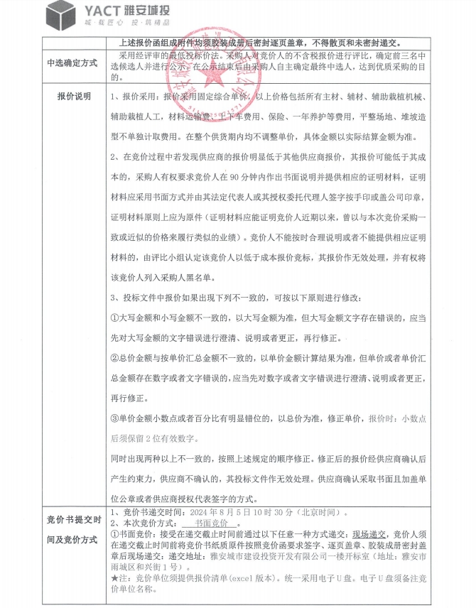 熊貓大道綠化工程綠化材料采購競價公告