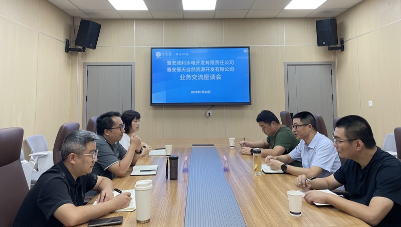 7月22日,雅安蜀天自然資源開發(fā)有限公司(以下簡稱蜀天自然資源公司)執(zhí)行董事賈鴻飛率隊赴雅安城利水電開發(fā)有限責任公司(以下簡稱城利水電公司)開展座談交流,旨在深化國企資源共享,促進協(xié)同發(fā)展。